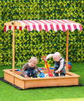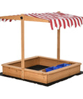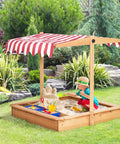 Kids Wooden Sandbox with Adjustable Height Cover and Toy Bin Storage, Children Sand Play Station Outdoor,Bottom Liner, for Backyard, Ages 3-7